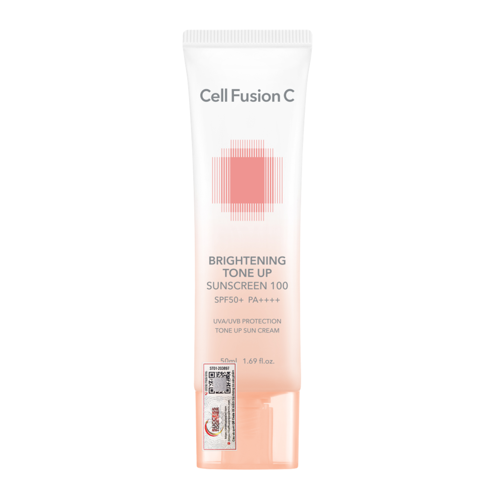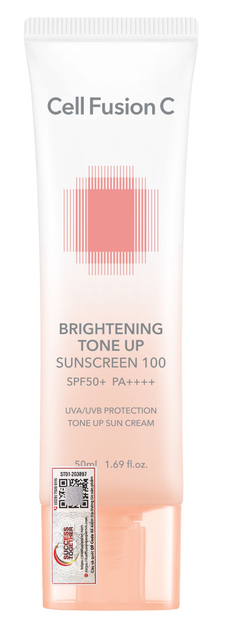 Cell Fusion C Brightening Tone Up Sunscreen 100 SPF50+ PA ++++ bảo vệ da trước tác hại của tia UV, giúp cải thiện độ đàn hồi, làm mờ các vết thâm, nám, sạm và hỗ trợ nâng tông da, che khuyết điểm & thay thế kem nền hàng ngày.