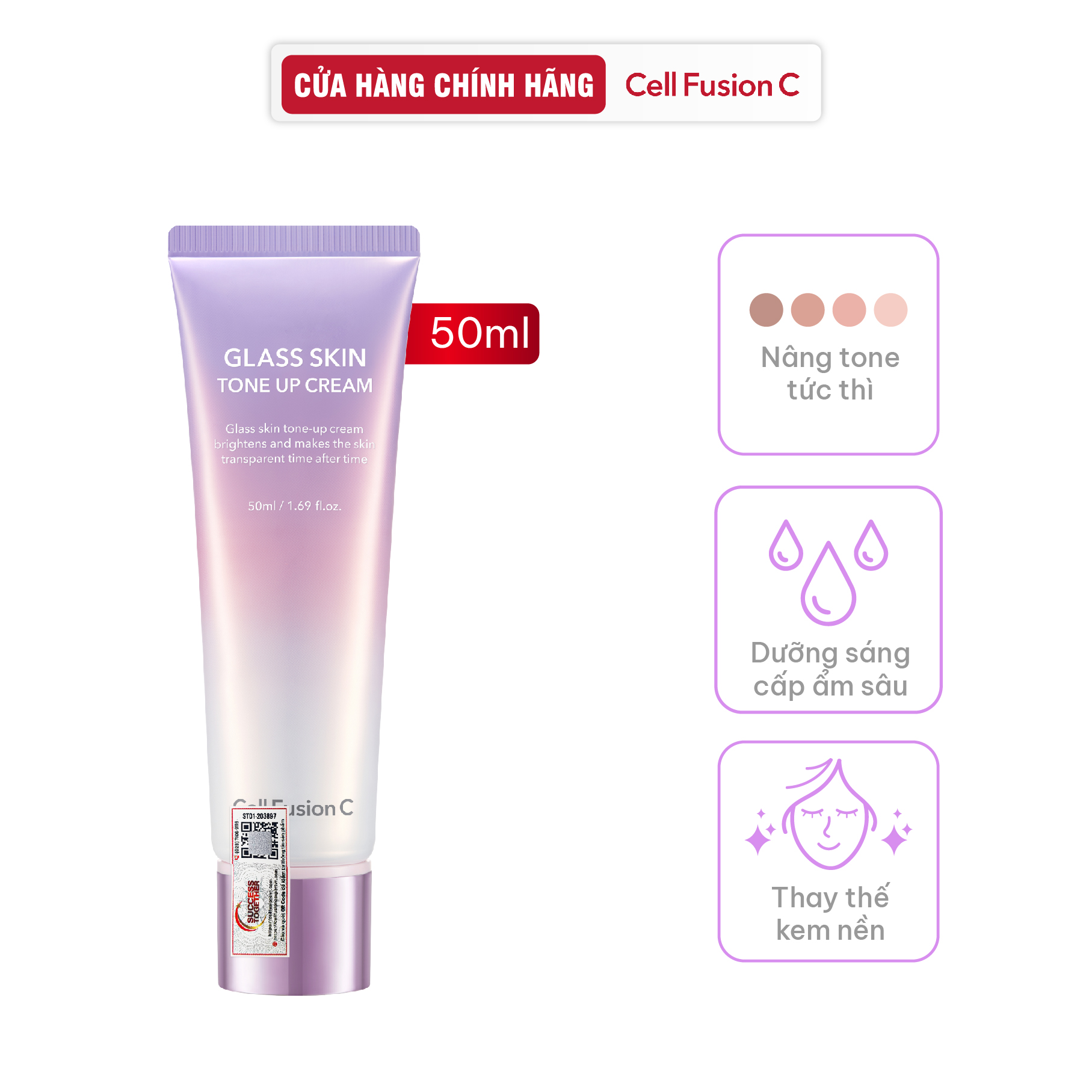 Cell Fusion C Glass Skin Tone Up Cream là kem dưỡng nâng tone tức thì như dùng filter, bổ sung dưỡng chất làm sáng và cấp ẩm chuyên sâu – cho làn da rạng rỡ, căng bóng, trong trẻo chuẩn Hàn Quốc chỉ trong 1 bước, đồng thời dưỡng sáng và làm đều màu da khi sử dụng lâu dài.