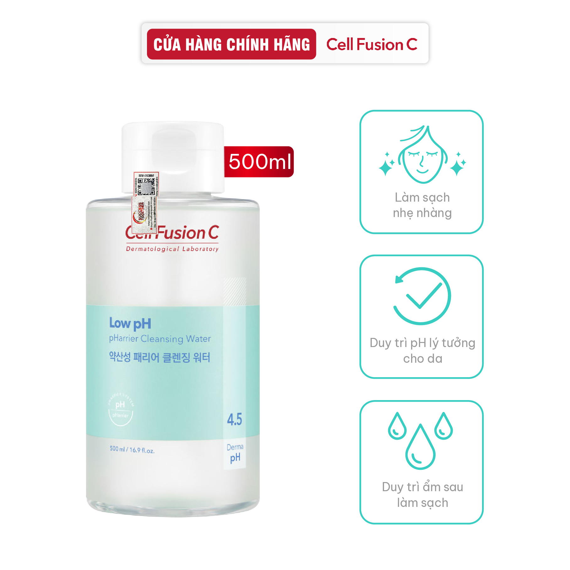Cell Fusion C Low Ph Pharrier Cleansing Water có khả năng làm sạch 3 trong 1, vừa làm sạch lớp trang điểm & chống nắng, vừa có khả năng cân bằng độ pH và tăng cường hàng rào bảo vệ da, mang đến làn da sạch sẽ và khỏe mạnh ngay sau khi sử dụng.