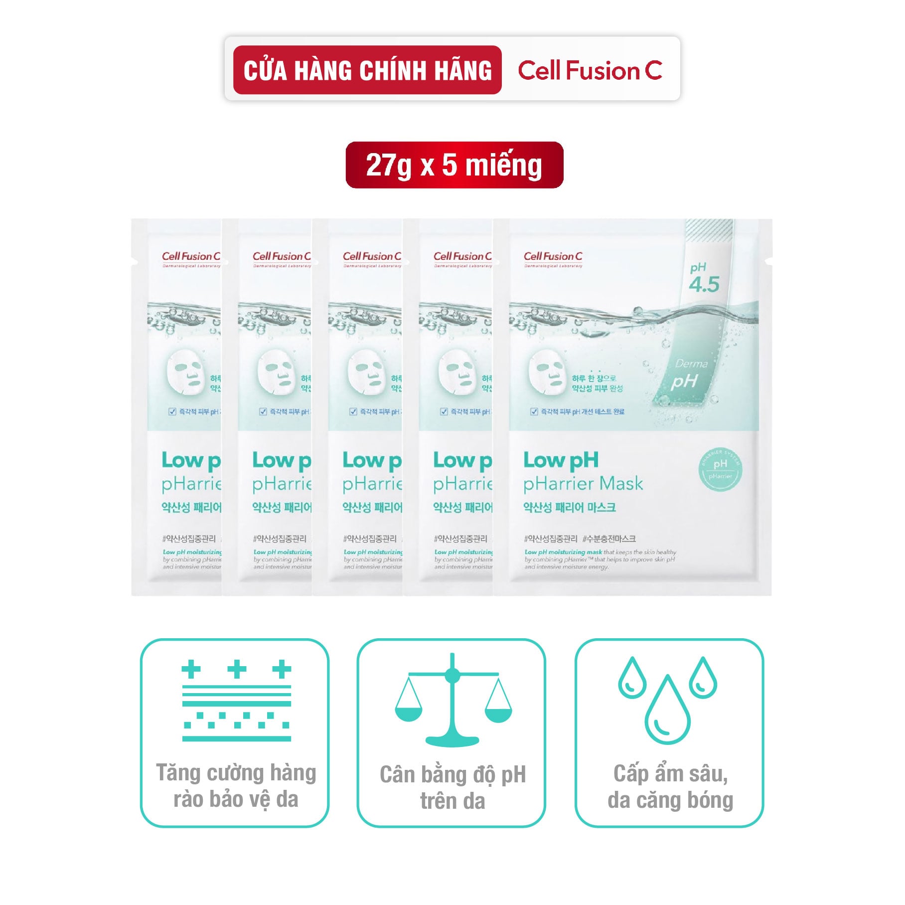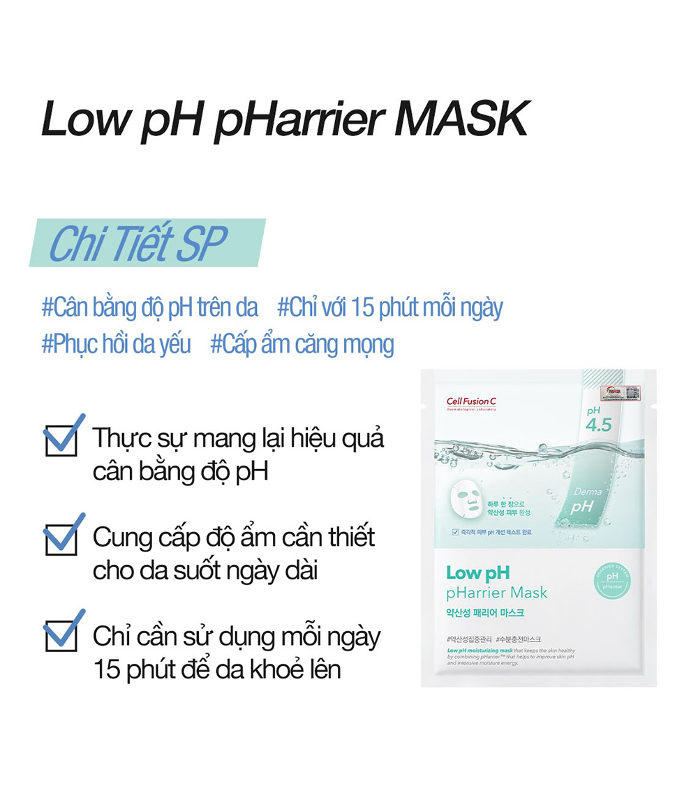 Cell Fusion C Low pH pHarrier Mask giúp da trở nên mịn màng. Với thành phần độc quyền pHarrier của Cell Fusion C giúp duy trì độ pH từ 4,5-5,5 từ đó hỗ trợ tăng cường hàng rào bảo vệ da và giúp da khoẻ hơn mỗi ngày.